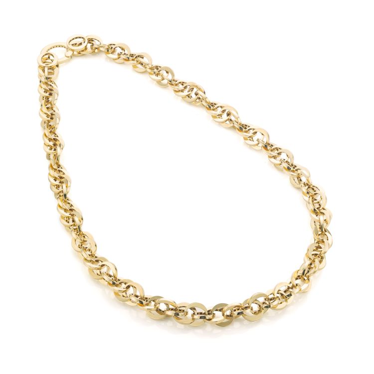 - Exclusive design: The in-house designed necklace in 14-carat yellow gold exudes an unusually beautiful luxurious feel with a touch of design making it very chic. The links are very supple making it wonderfully wearable.