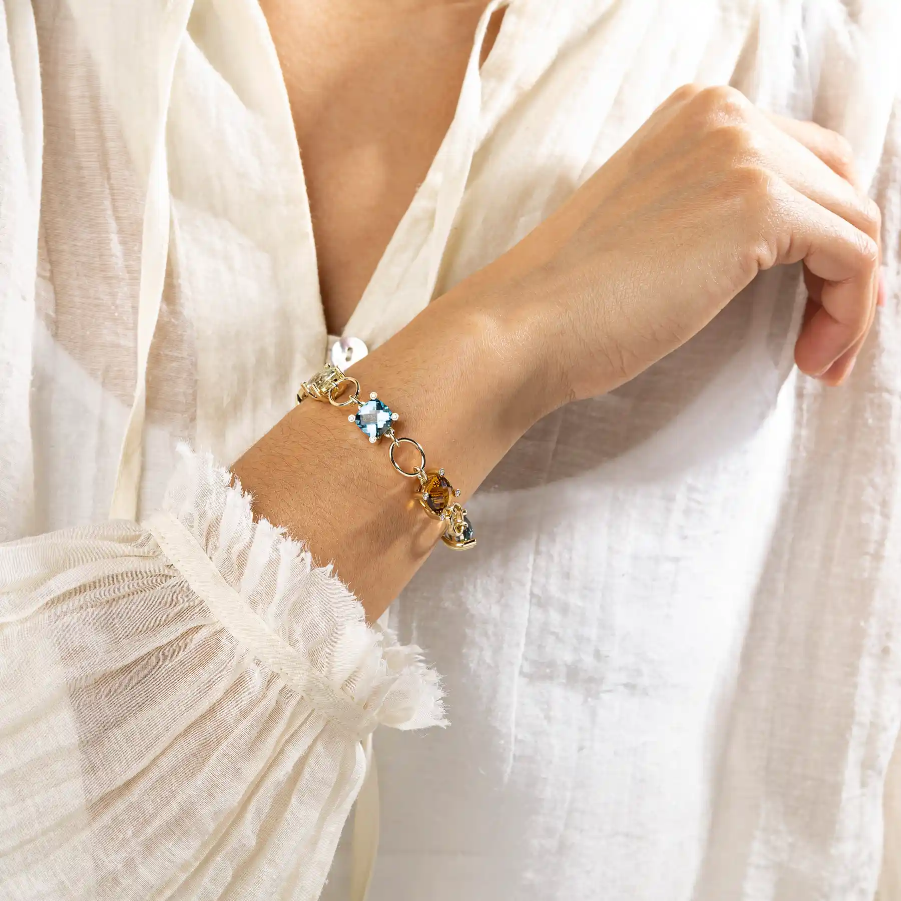 Bracelet with Prasiolite, Topaz and Whisky Quartz