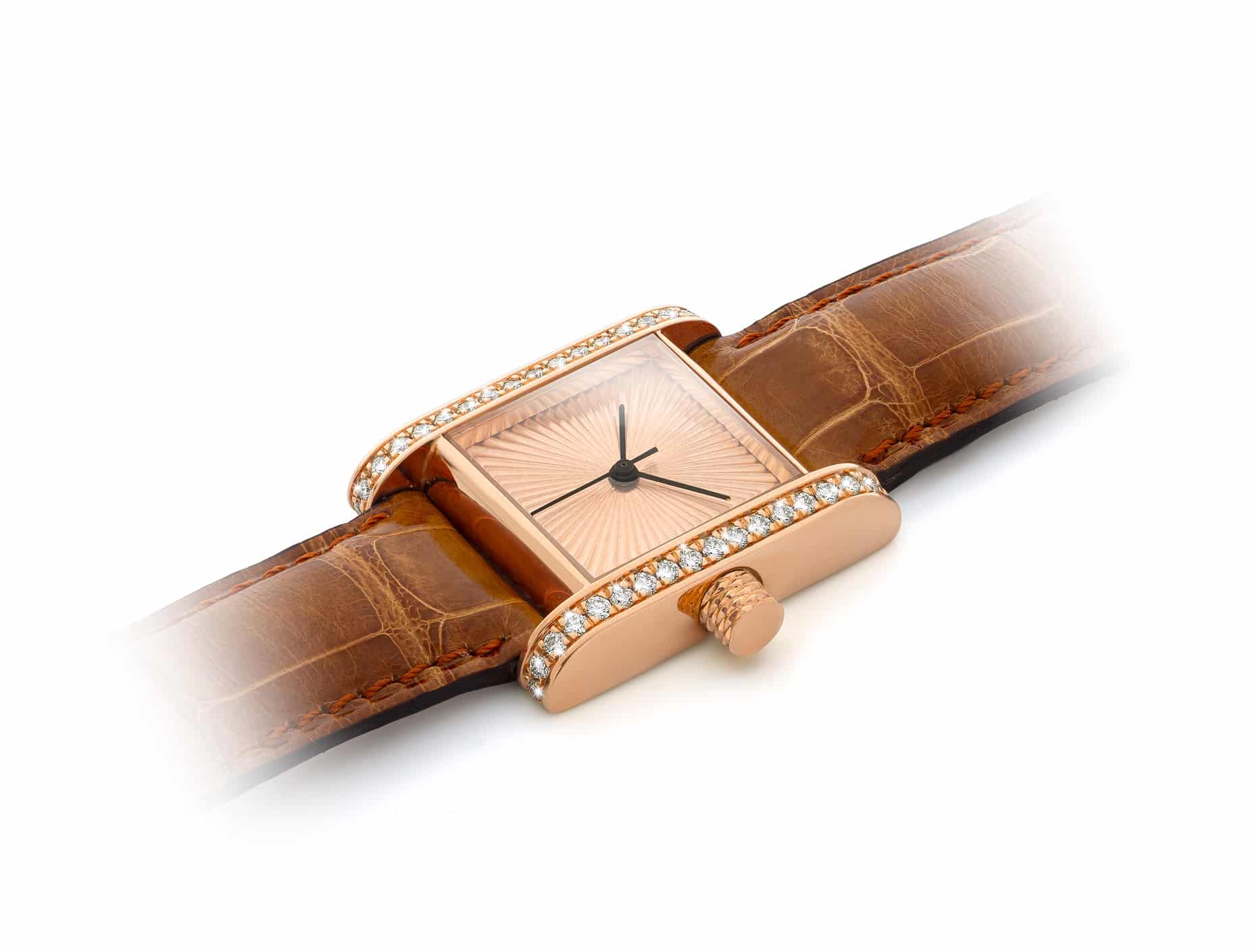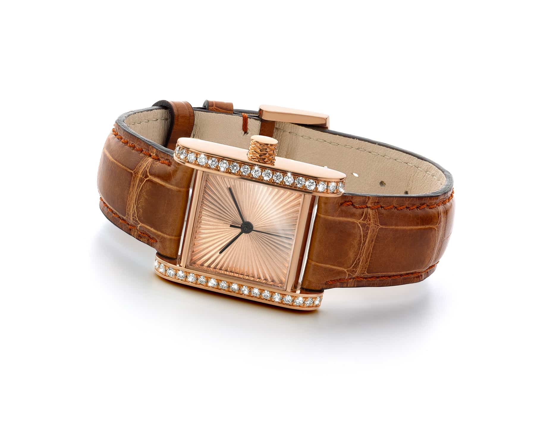 De Cober Square One roségoud met een gelimiteerde oplage van 100 stuks onderscheid zich door zijn gestileerde vormgeving. Dit 18K roségouden quartz horloge is speciaal ontworpen om zo zacht mogelijk op de pols gedragen te worden en is bezet met 38 Diamanten E/LC. Waterdicht tot 3 ATM. Dit horloge is tevens leverbaar in 18K witgoud en 18K geelgoud. Voor deze horloges wordt uitsluitend fair-trade goud gebruikt.