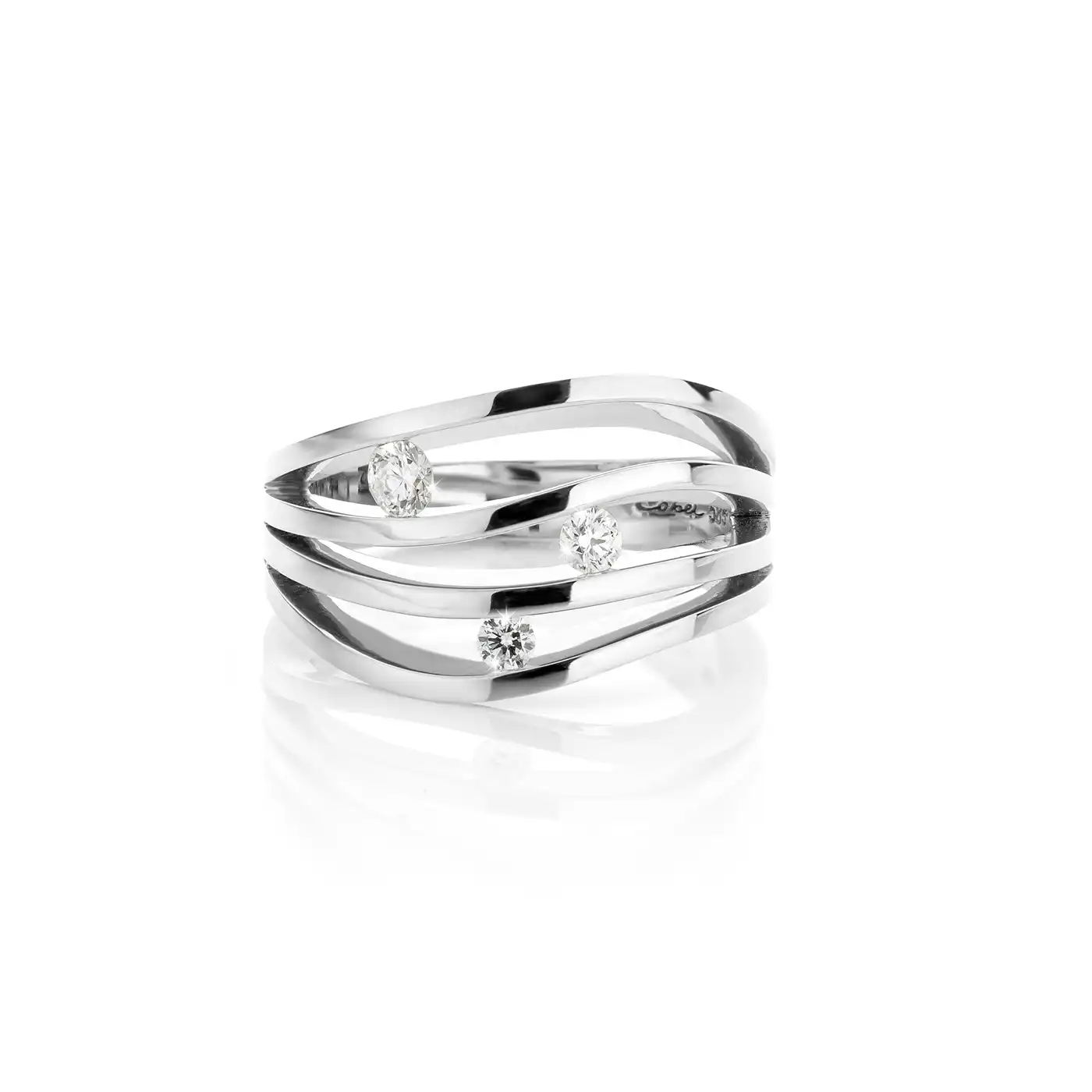 Design wave ring gemaakt van 14K witgoud gezet met 3 Briljant geslepen Diamanten van 0,11 ct. – 0,07 ct. – 0,05 ct. IF/River-E. .