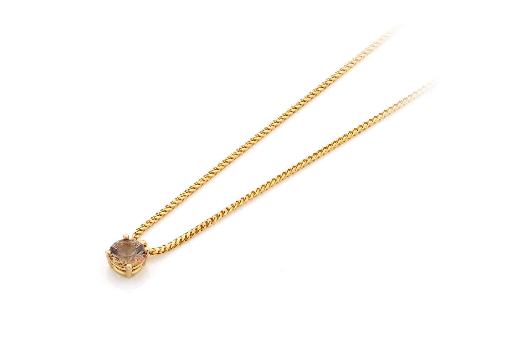 Geelgouden hanger met bruine Saffier