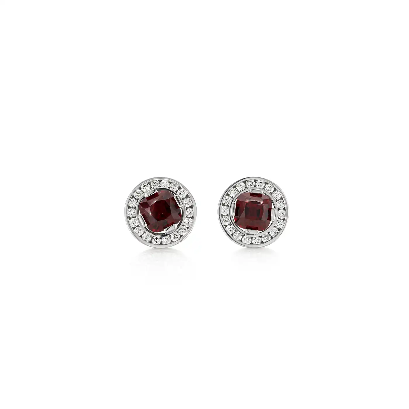 Oorknoppen in 18 karaat witgoud met diamant en twee spinellen van 1.44 Karaat per stuk.