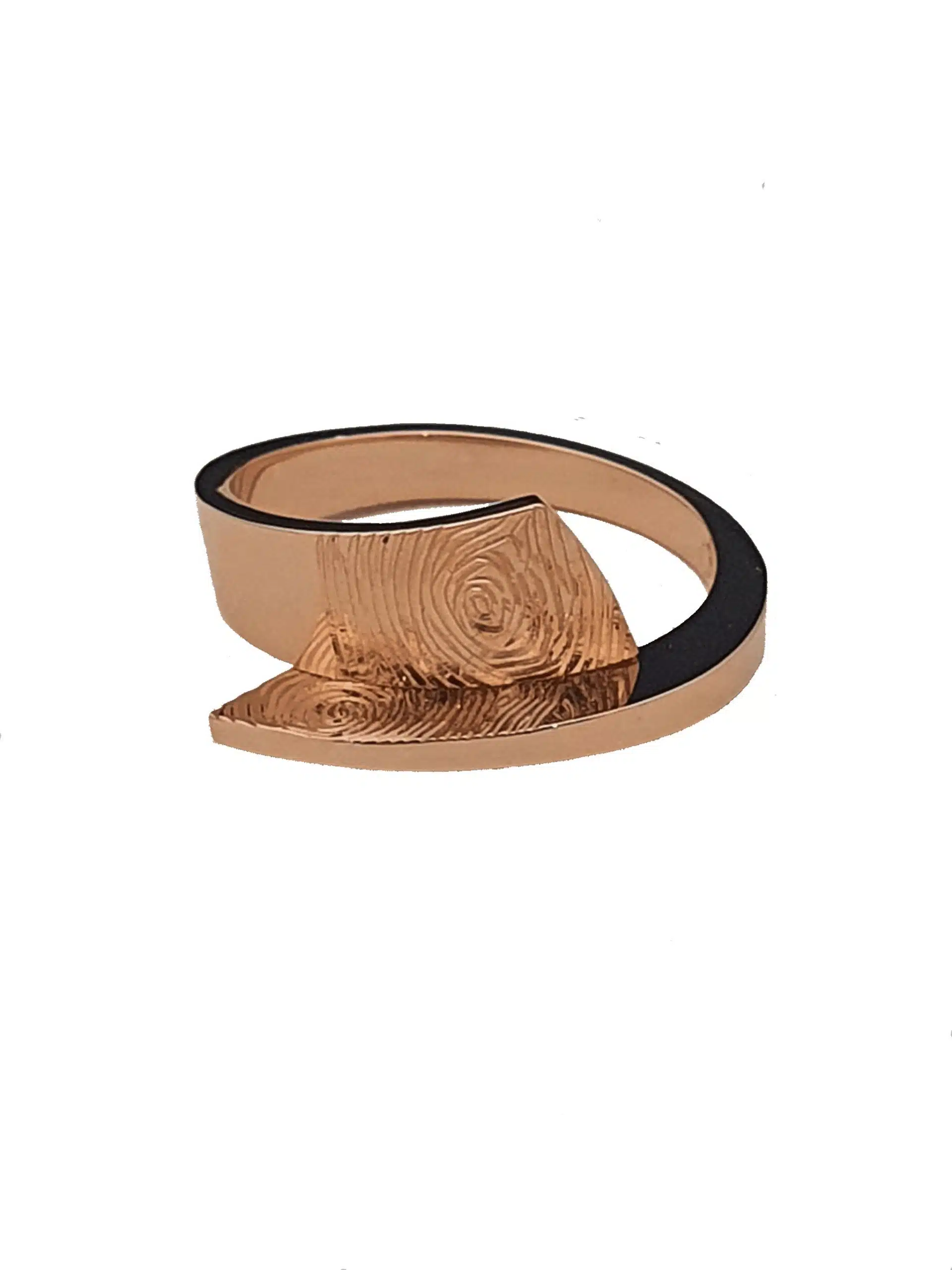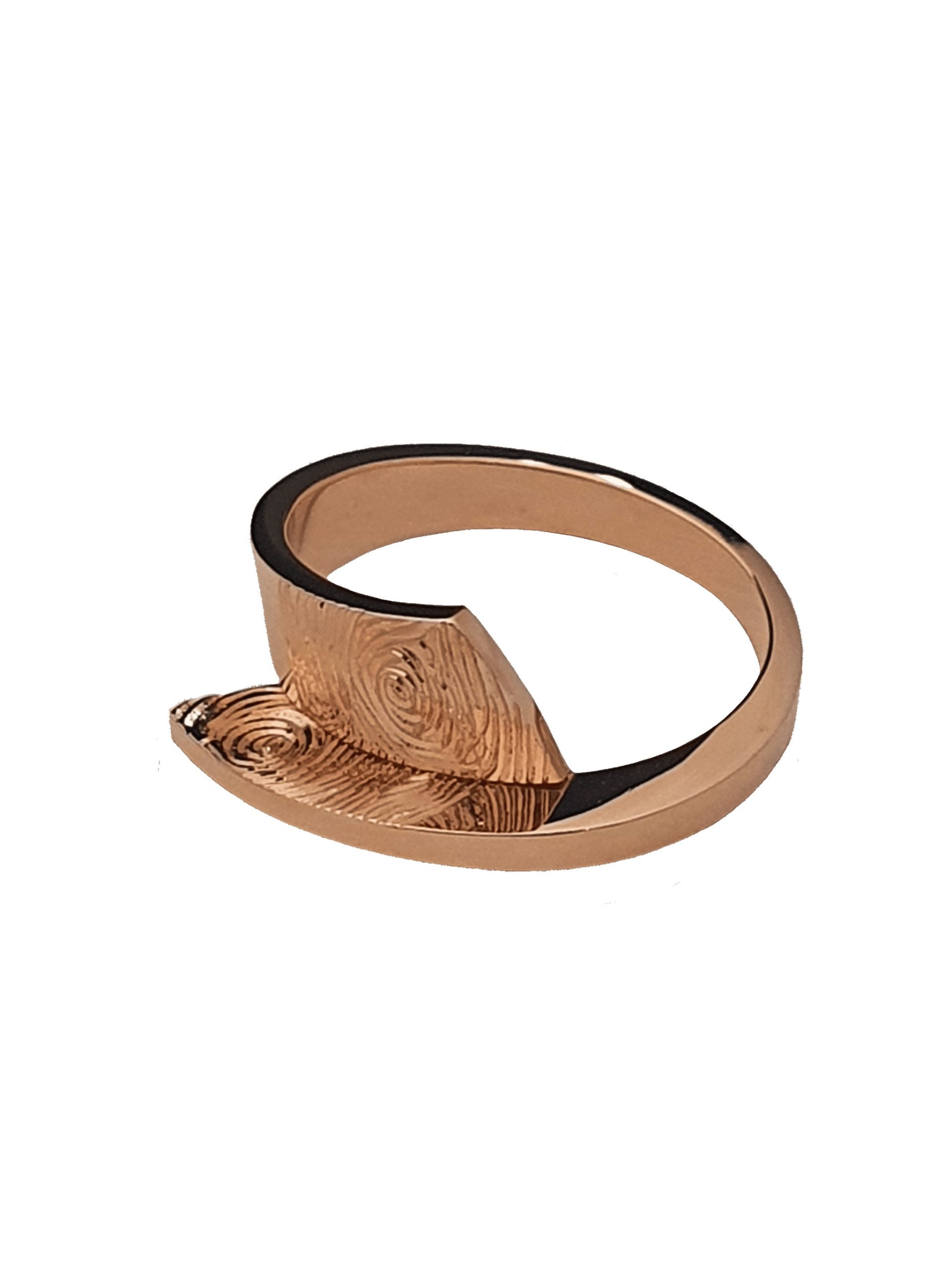 In roodgoud gemaakte gedenkring met vingerafdruk.