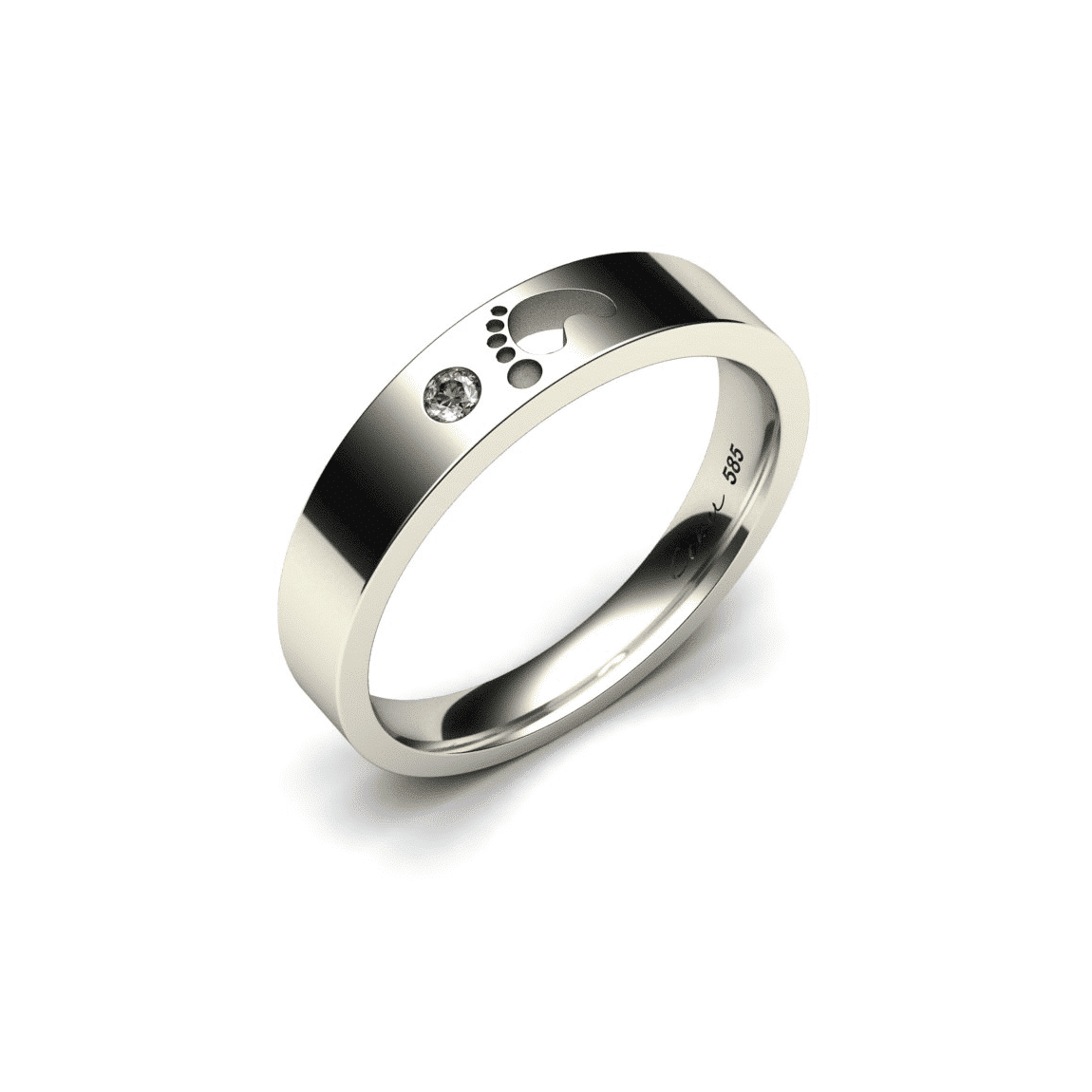 Dit gedenksieraad is gemaakt met de afdruk van het voetje van uw kind in 14K witgoud. Naast het voetje is een Briljant geslepen Diamant van 0,05 ct. E/LC. gezet. Al ons goud is Fairtrade.