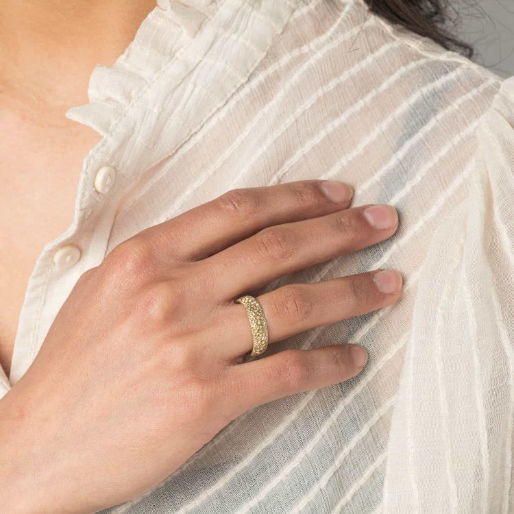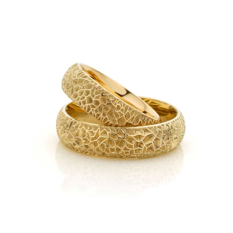 - Uniek Ontwerp: De textuur is telkens iets anders waardoor elke ring uniek is. Ook kan de breedte een beetje worden aangepast, zowel breder als smaller, wat het beste staat op uw hand. Beide ringen zijn uitgevoerd met een comfortabele ronde binnenkant.